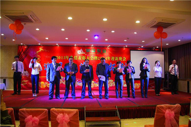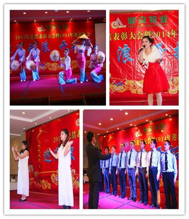 常安物業(yè)年終總結(jié)表彰大會暨迎新晚會于2014年1月17日在學(xué)府路順德佬圓滿結(jié)束。整個活動分為三個環(huán)節(jié)。1、2013年終總結(jié)大會。張總在會議上對公司一年主要工作、取得的成績做了通報(bào),對2013年表現(xiàn)優(yōu)秀的服務(wù)中心、個人給予表彰。2、迎新晚會。各部門、服務(wù)中心的精彩表演;搞笑、歡樂的游戲;激動人心的抽獎將整晚的活動拉向高潮。3、歡樂晚宴。我們共同舉杯,開懷暢飲,慶祝2013年的輝煌,迎接新一輪的挑戰(zhàn)。