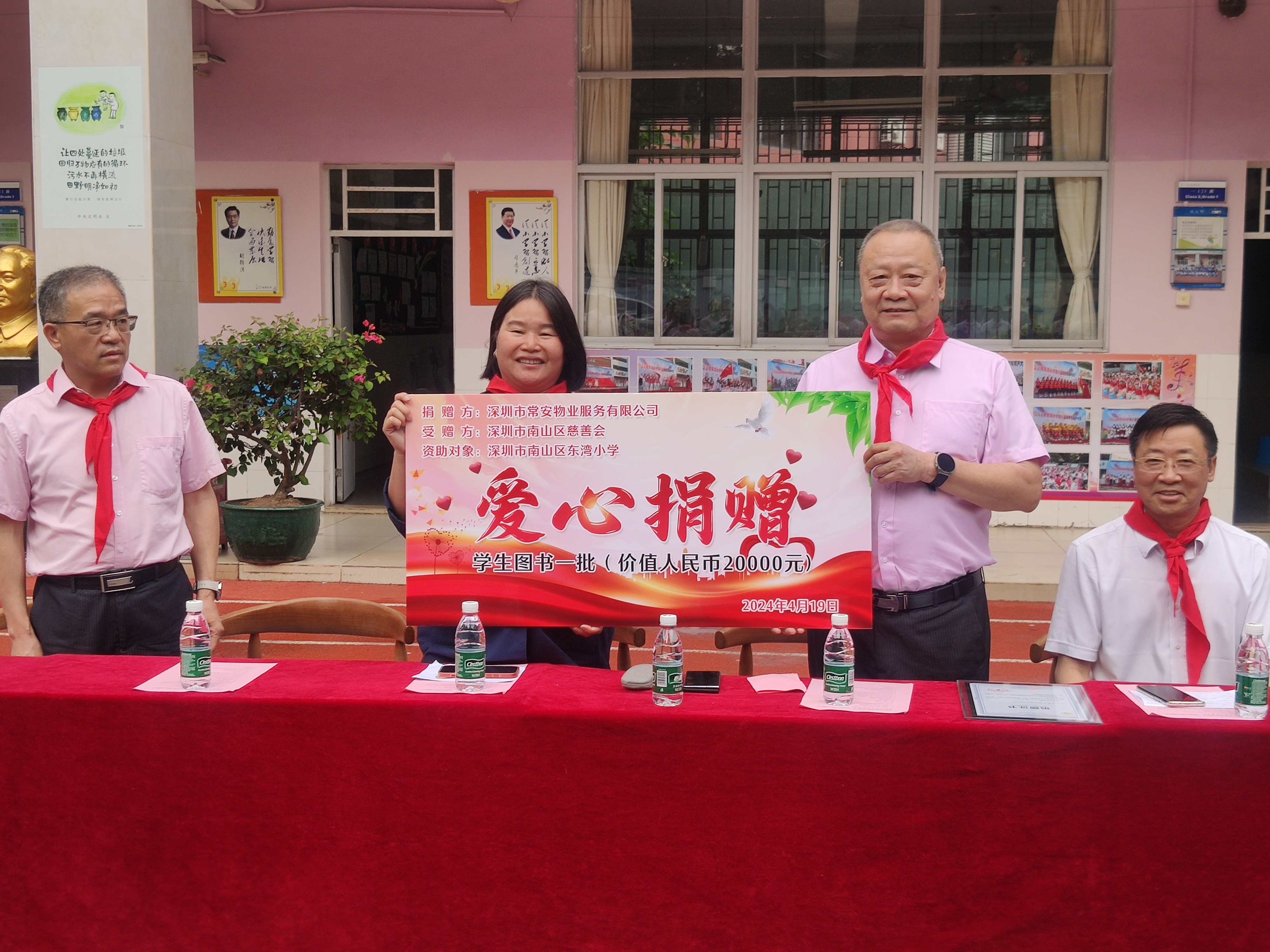 4.深圳市常安物業(yè)服務(wù)有限公司向東灣小學(xué)捐贈(zèng)價(jià)值20000元圖書(shū)一批。